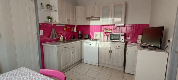 Espace de vie lumineux : Un salon séjour traversant qui profite d'une belle luminosité tout au long de la journée. Cuisine fonctionnelle : Cuisine aménagée et équipée, prête à accueillir vos repas en famille. Trois chambres : Parfaites pour une famille ou pour aménager un bureau selon vos besoins. Salle d'eau fonctionnelle: Douche à l'italienne pour votre confort. Espaces pratiques : Une petite arrière-cuisine et un garage attenant.
